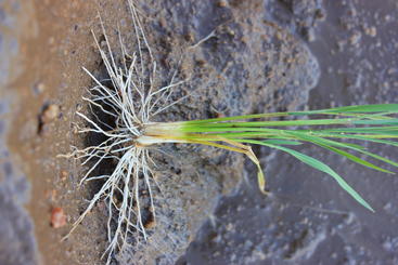 Rice plant with roots visible. (Julia Bailey-Serres/UCR)